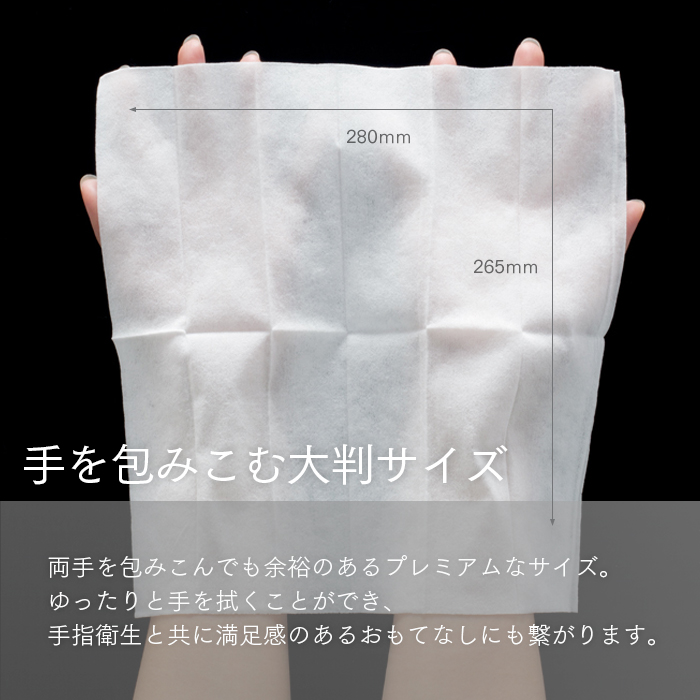 大きくてしっかりした紙質なので 拭きたい手指をしっかり拭ききれて気持ち良い使い心地です。