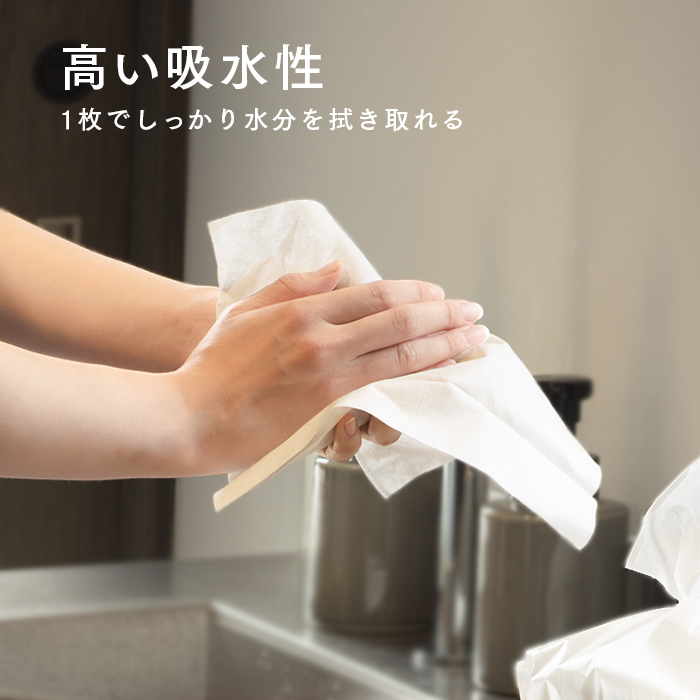 商品の特長 | ●高い吸水性で1枚でもしっかり水分を拭き取れる ●コットン100%のやわらかさで肌にやさしく敏感肌やお子様にも安心 ●使い切りタイプで毎回清潔に使用でき衛生的 ●家庭・美容サロン・飲食店・オフィスなど幅広い用途に最適 |