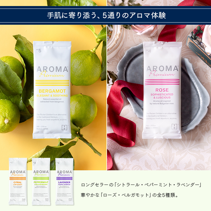 | 商品名 | 紙おしぼり アロマプレミアム(AROMA premium)5種アソート 500本 |